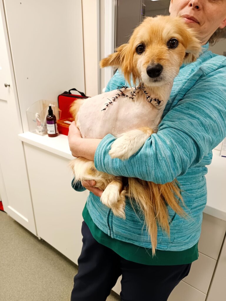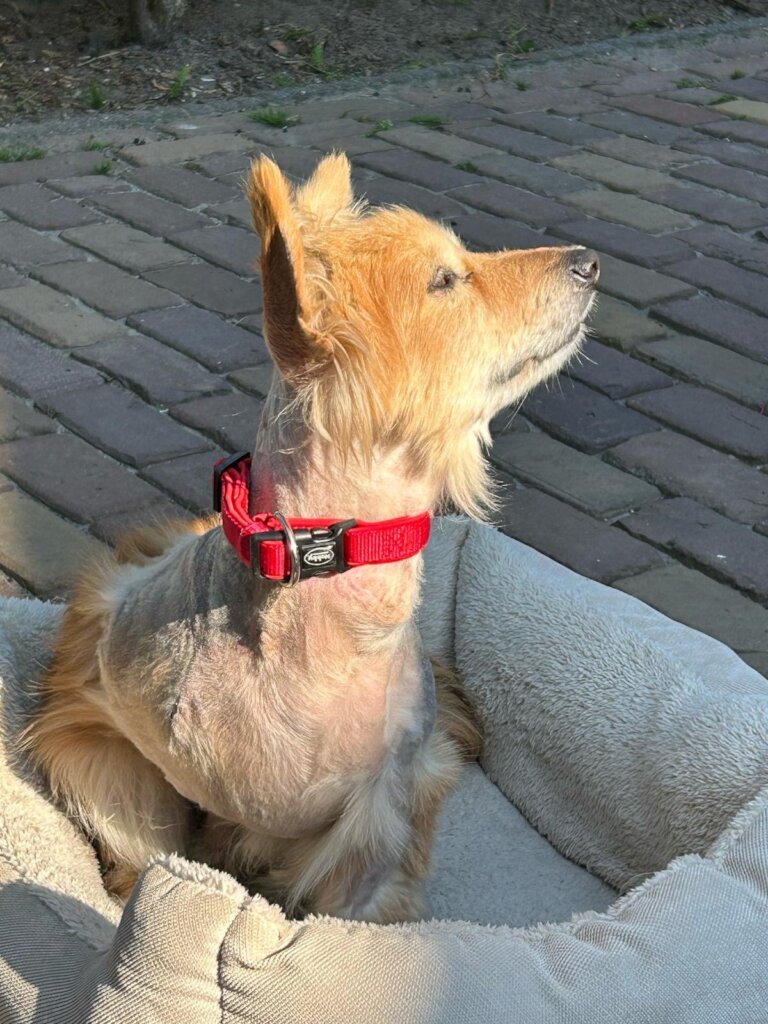 Our next patient is darling Keira, she who was discovered by our partners from Ilfov Animal Services while they were attending to horses in a village. Keira, a small pile of dog that no one sees.... A hard slap on her tender head, so she lost an eye, but luckily not her faith. Broken teeth, a jaw full of pain, yet her soul remained pure and sweet. One eye less, but a heart of gold, Keira's love for humans remains strong and trusting. Chantal and Madelon knew she deserved so much more and found her the perfect home with Judith in Holland. Now Keira can live out her golden years in a loving home in Holland.