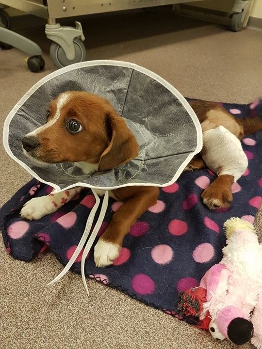 Thank you for reading about Chocolate. Please join our Facebook page and see the latest video of her and the other work we are doing! She is up and hopping along getting some supervised exercise and is no longer the frightened little pup that we met a couple weeks ago!