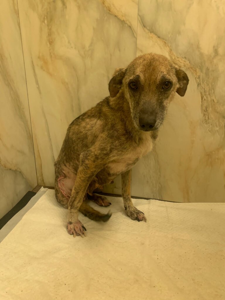 Catarina was welcomed into our program. Freezing and so itchy......but not anymore. She was given a nice calming warm bath and snuggled into a warm coat as the medication administered killed those awful mites she was infested with.