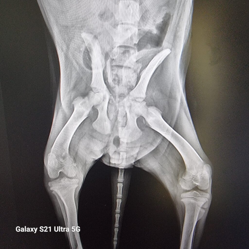The dog arrived at Piteasca, and there an MRI and a CT scan were done. A cervical disc herniation was discov- ered. He had surgery, and after a week, the puppy was up as if he never had a problem.