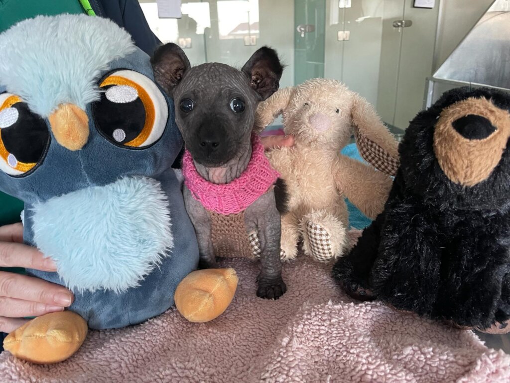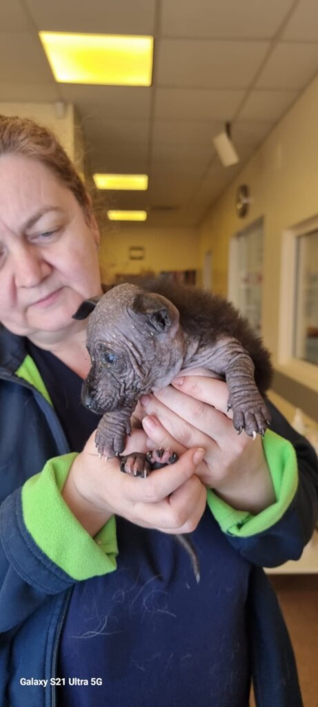 Tiny Catarina was found wandering along the side of a busy road. Able to fit in ones hand, abandoned in below frigid temperatures, and suffering from severe mange that covered most of her body. She only had a clump of hair along her back. A Good Samaritan brought her to Center of Hope. He had heard about our social program that helps injured and diseased animals and hoped we could treat her as he had no funds.