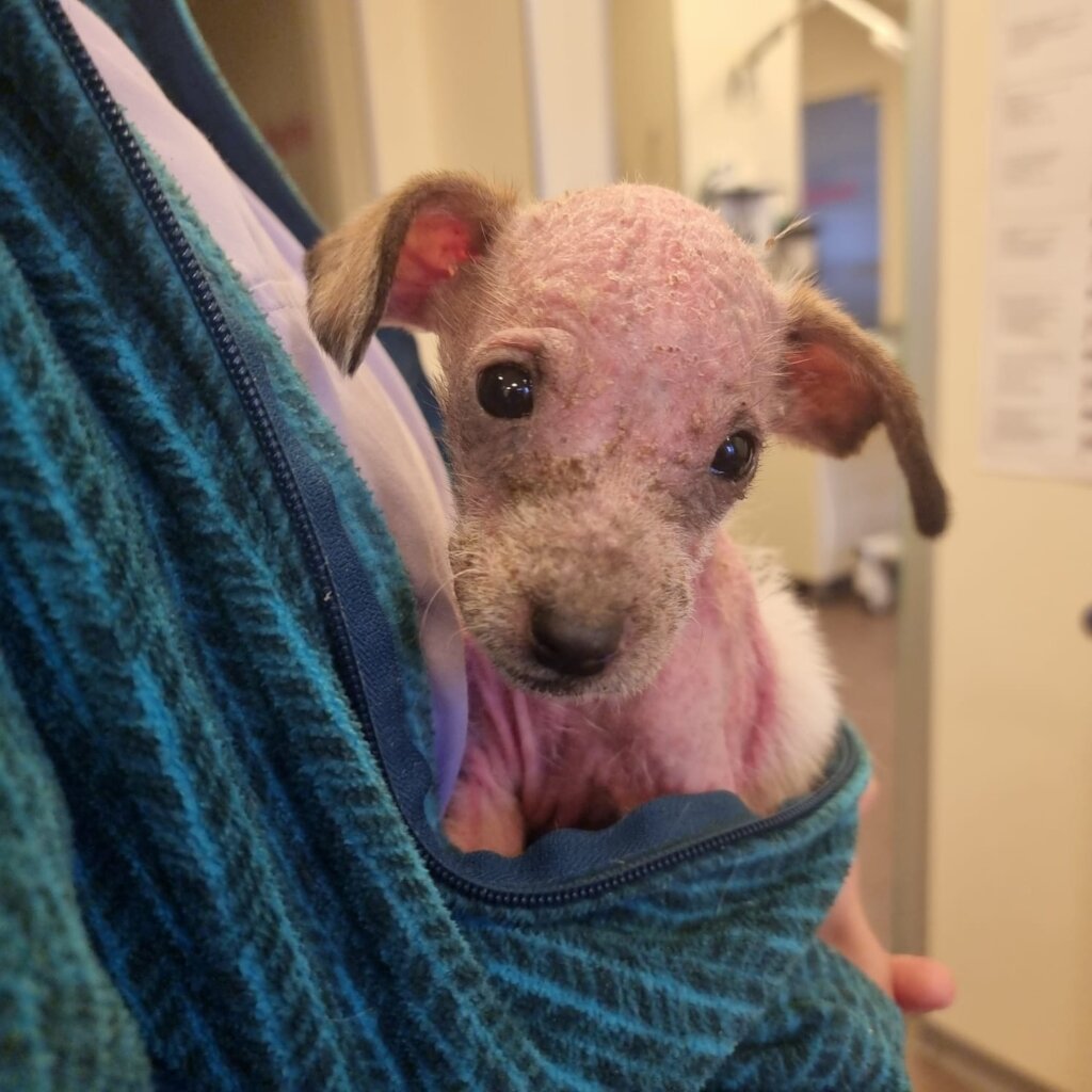 Our next story is of an abandoned litter of 4 puppies suffering from severe mange and other parasites. They were admitted to Center of Hope hosptial under the Homeless Animals Hospital program and are currently improving under treatment.