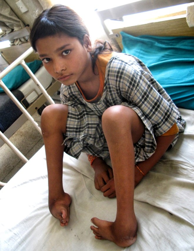 Ten-year-old Sumit was born with a condition that caused one of his legs to grow longer than the other, so he is in HRDC to “grow” some new bone in his shorter leg. With an external fixator, it’s not a complicated process, but it is a lengthy one. He has spent the last three months in the hospital and has four or five more to go. “The HRDC school is great. If it wasn’t here I would have to repeat grade five, but I even sat my exam here, so will be able to go up to grade six now.”