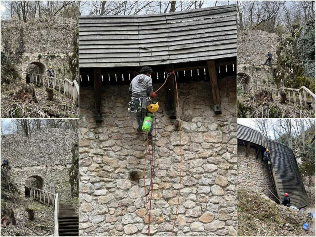 It was only 40 people who managed to take the castle (ruins) back from the overgrowing vegetation and other non-welcome elements like pieces of trash. Surprisingly during the siege the new owners also took care of the wooden furniture and the modern building elements - they have covered those with a defensive laque to make sure the weather does not wear them down earlier than planned.