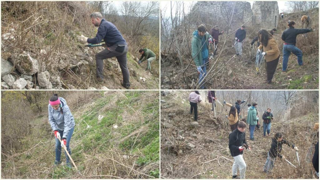 Finally this March we got the wether conditions to hold the 'Save the Castle Days' and the actions described above took place around the lower and high castle, too. The multinational team had arrived from the Eötvös Loránd University of Budapest where students from around the world attend a doctoral course. They represented almost half of the team cleaning Szadvar.