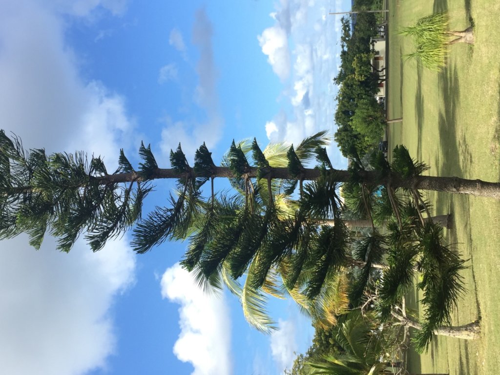 These pines are across the island. You will see many that look like the one outside my door. Many others are stripped bare, and only their dried trunks remain.