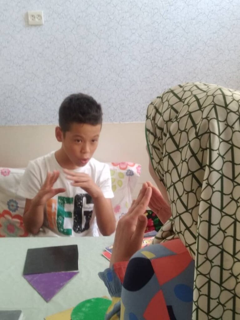 Amina is a girl with speech and cognitive delay. She had difficulties in socializing with other children. So, she came to school preparedness group to socialize and improve her skills for going to school. At the beginning, her mother was very worried about her.