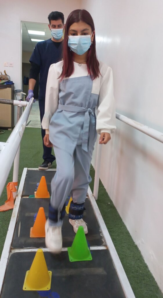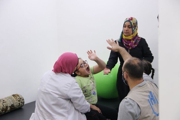 After initially seeking rehabilitation services at a nearby hospital, Judy’s mother learned of the Primary Health Center, which opened in Amman in March 2022. The first of its kind, the center serves around 600 people per day and is easier for many members of the community to access since the hospital is often crowded. In the center, HI provides rehabilitation services such as physical and occupational therapy, and services that support people with cerebral palsy, survivors of stroke and individuals with mobility challenges.