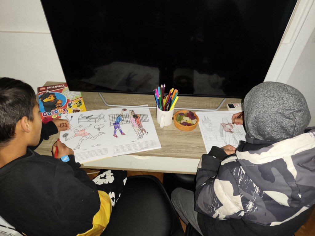 A total of 24 different children (13 girls and 11 boys) were included in these activities. The services provided included 79 meals, 9 baths, and 9 clothing changes, as well as 186 activities such as play, learning, watching TV, and drawing, along with 3 workshops.