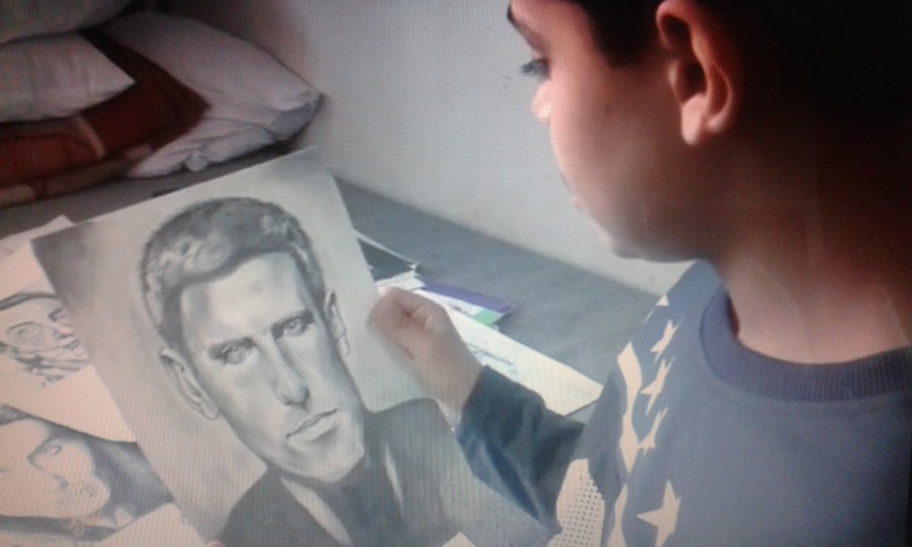 His father Hakim explains that they noticed Farhad's talent very early. He began with drawings of cartoon characters. He continued to paint animals, and then family members, brothers and parents, and moved to drawing portraits of celebrities.