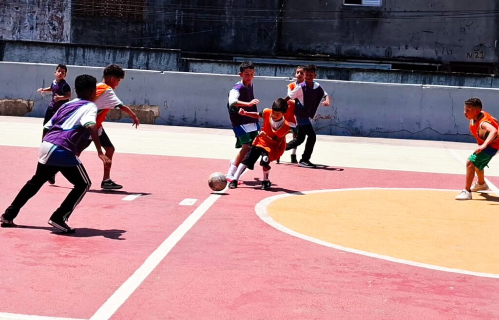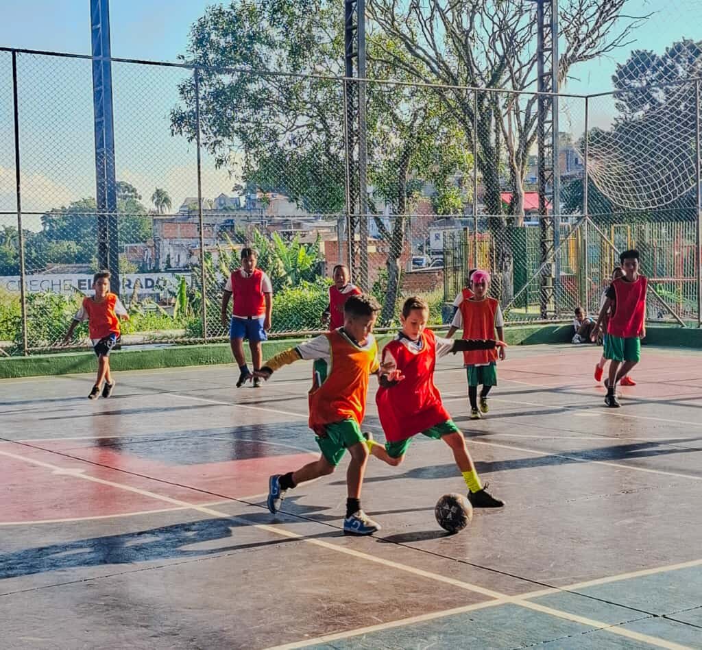 Working with children brings both rewards and challenges. Gustavo describes how each child arrives with different emotions and experiences. “Some days children are very happy, and some days they are unhappy because of situations at home or school,” he explains. Supporting them requires patience, emotional awareness, and consistency. There are also practical challenges, including heavy rains that flood uncovered courts and the need to clean facilities to ensure safe playing conditions.