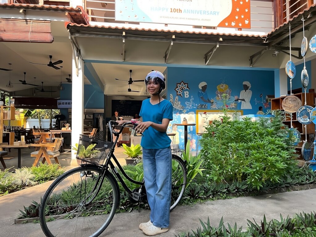 “The moment I received the bicycle, I was really excited. Now, I can travel to school without relying on others. I can go to the market, explore Siem Reap, and most importantly, focus on my studies without worrying about transportation. This simple gift has given me so much independence, and I am truly grateful. In the future, I have big dreams. I want to open my own shop where I will sell pastries, serve coffee, and teach others who are passionate about these skills. I want to help people gain valuable experience and job opportunities so they can support themselves, their families, and their communities.”