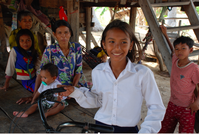 Srey's school is currently a little less than 2 kms from her home but when she graduates primary, the lower secondary school is far off. When asked about upkeep we were told the dog had chewed up the pump and her bike had a flat tire!!! Being concerned about such things we asked how long it’s been flat and to our surprise she told us it was punctured as she was riding home to meet us!