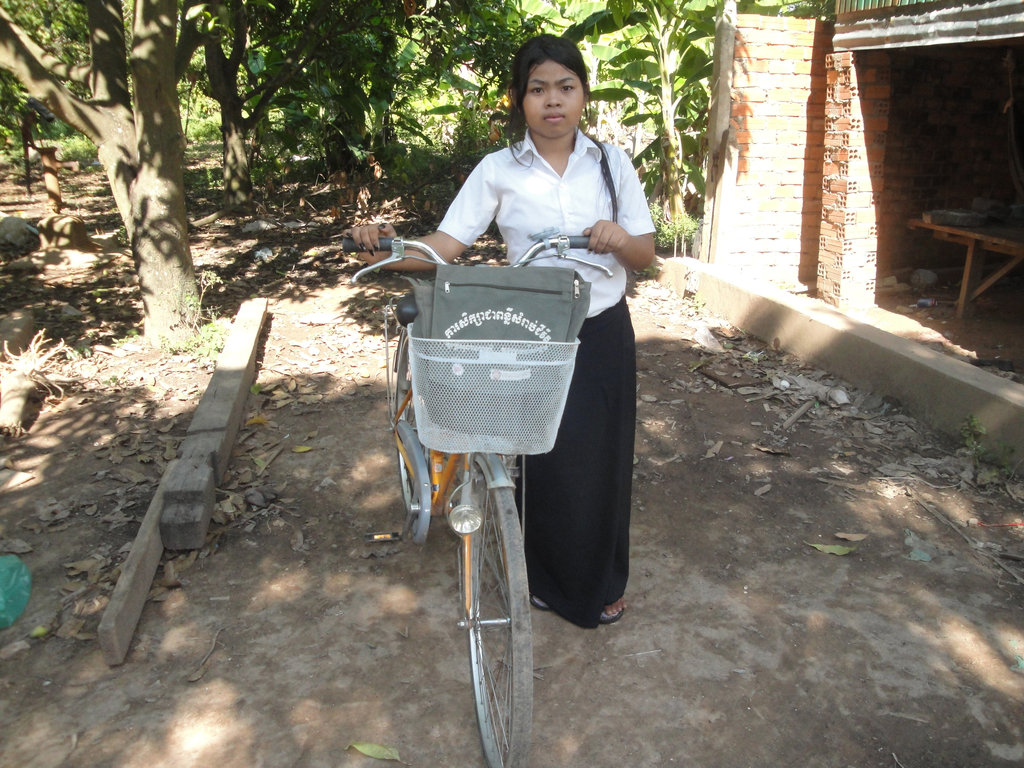 Since last October when Sim Soline began her upper secondary studies, she has walked four kilometers to her new high school. Sometimes she was able to ride along on the back of a friend’s bike or pay a moto-taxi to bridge the distance – whatever it took to make it to class. Her attendance is near perfect, making this 10th grader an excellent role model for her six younger siblings, all of whom are still in school.