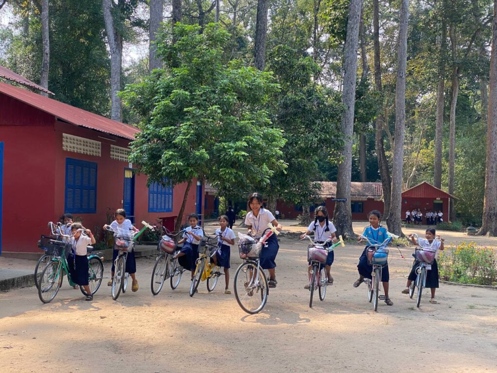 Lotus Pedals, together with our local partner, Bayon Primary School, provided 21 bicycles to female students at Run Ta Ek. Bayon Primary School Project has been supporting a primary school located in the Angkor Wat temple area in Siem Reap Province. Last September, the Cambodian government, following a UNESCO recommendation and with the desire to preserve the temple area, ordered the relocation of families living near the Angkor Wat gates to another area known as Run Ta Ek, 35 km from their original residence. This has made it even more challenging for the students to commute to school without a bicycle. Having seen the challenges, Bayon Primary School Project decided to move their project from Angkor Wat to Run Ta Ek, so they can continue to help these students.