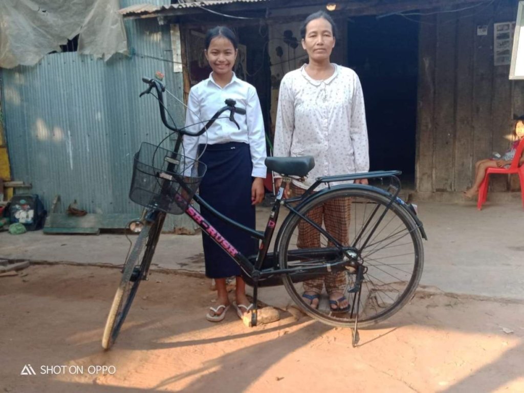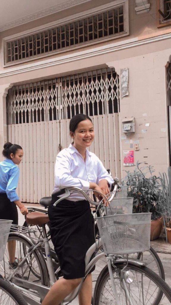 Manavy is a first-year student in English Literature. She lives with her father on a plot of rented land in Siem Reap. When Manavy was in primary school, she had to walk, or catch a ride to school because her parents couldn't afford to buy her a bicycle. Her mother sold deep fried bananas on the street, while her father cleared weeds and grass on people's farms and properties, earning on average $1.25 per day. They worked hard because they wanted Manavy to have education, but their combined income was not enough to even buy rice to eat, let alone afford study materials and school uniforms for her, so they had to borrow money to keep her in school. Manavy still remembers her mother telling her: "life is very difficult without education, so you have to have some knowledge because only education can help you get out of poverty in the future and I cannot take care of you forever." She says it is her mother's words that inspire her to pursue her studies and never give up, regardless of how challenging her family situation is.