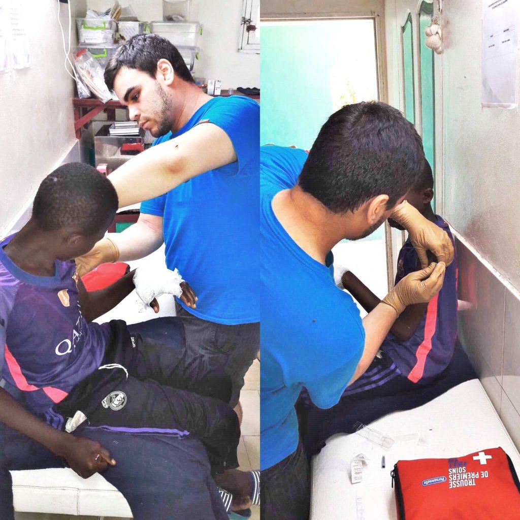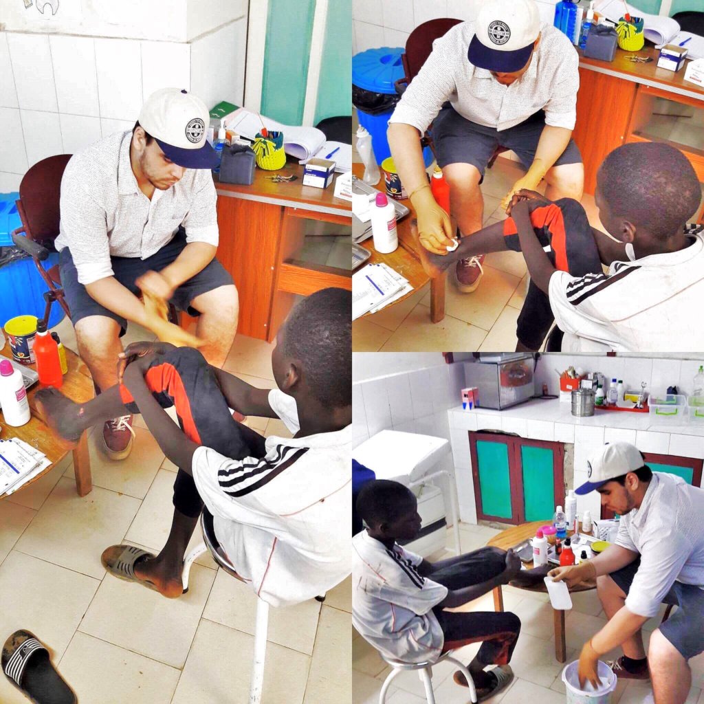 On a typical day I got up at 9 a.m. I began by taking a shower with my friend Bernard the lizard, whom I shared my bathroom with, and my breakfast was waiting for me on a counter near my room. Then I walked for 5 or 10 minutes to Maison de la Gare’s center to start my day at the infirmary which was open from 10 a.m. until 2 p.m. The infirmary closed earlier than usual when I was there because of Ramadan. In the infirmary, I had to re-learn my technique of applying bandages because, not surprisingly, it was very different from what I was used to. My dear friend and colleague Abibou Fall was kind and patient in teaching me his technique.