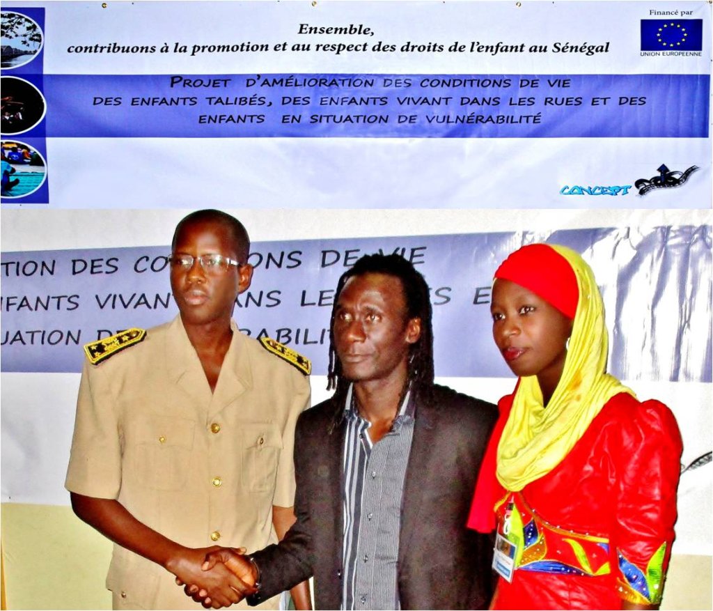 Mr. Sahite Fall, Deputy Governor for Development for the Saint Louis region, presided over the ceremony. It brought together people working in child protection in Saint Louis including representatives of government agencies, Koranic teachers ("marabouts") and women who act as godmothers to the children, along with representatives of the various movements and associations working in this area. Personnel from Maison de la Gare and from Concept, our partner in the project, were also present.