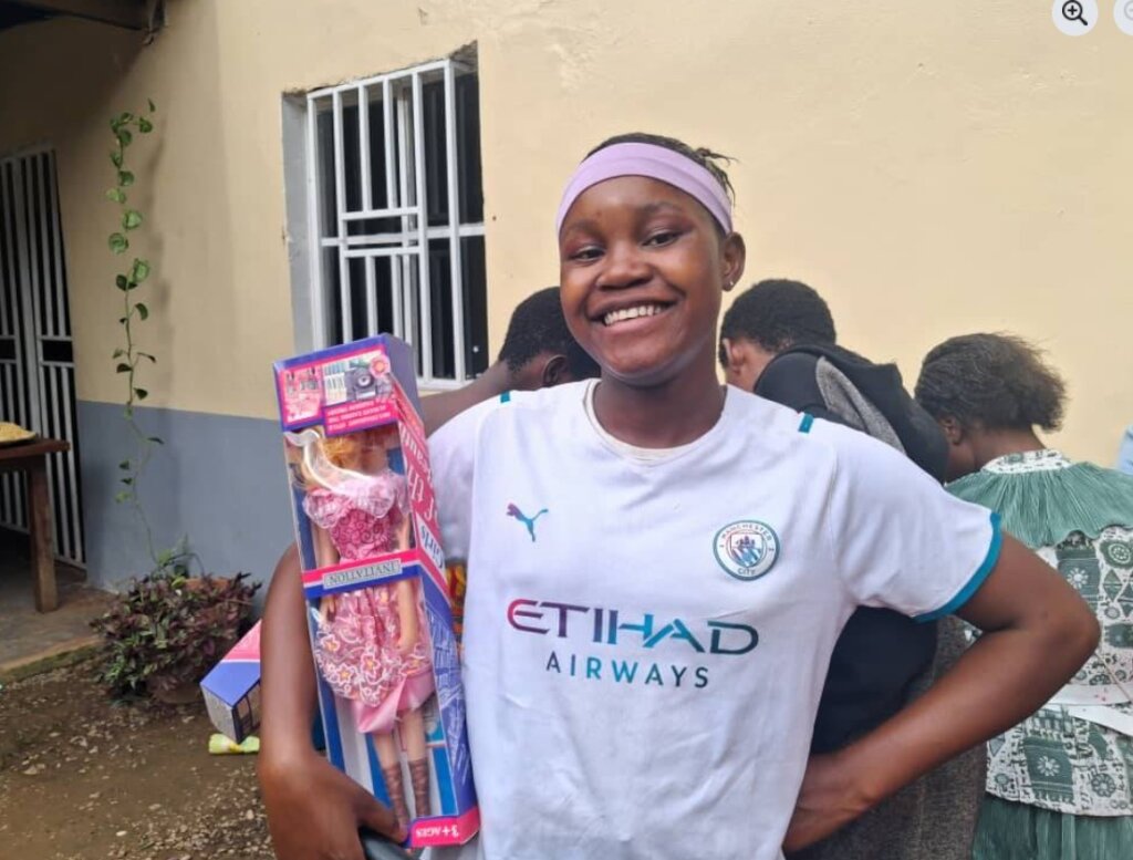 At Christmas 2025, the children who come to the Day Centre were greeted with a big lunch (see photo above) followed by games and presents. The children forgot the hardship of daily living on the streets and enjoyed a really good time. The children at the four Kimbilio houses were also given a special meal followed by presents and games. The photo below tells the story!