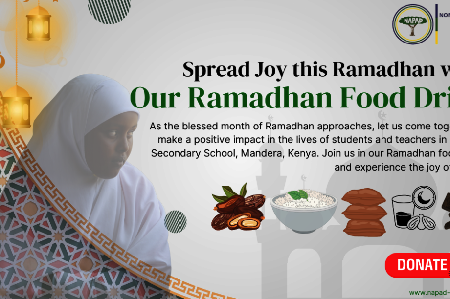 The holy month of Ramadhan will be upon us, and as we prepare ourselves spiritually, let us also remember to increase our charity along with our worship. Join us in our efforts this Ramadhan to collect donations to help purchase food items locally for 180 students and 10 teachers in Khalalio Girls Secondary School, Mandera County, Kenya.