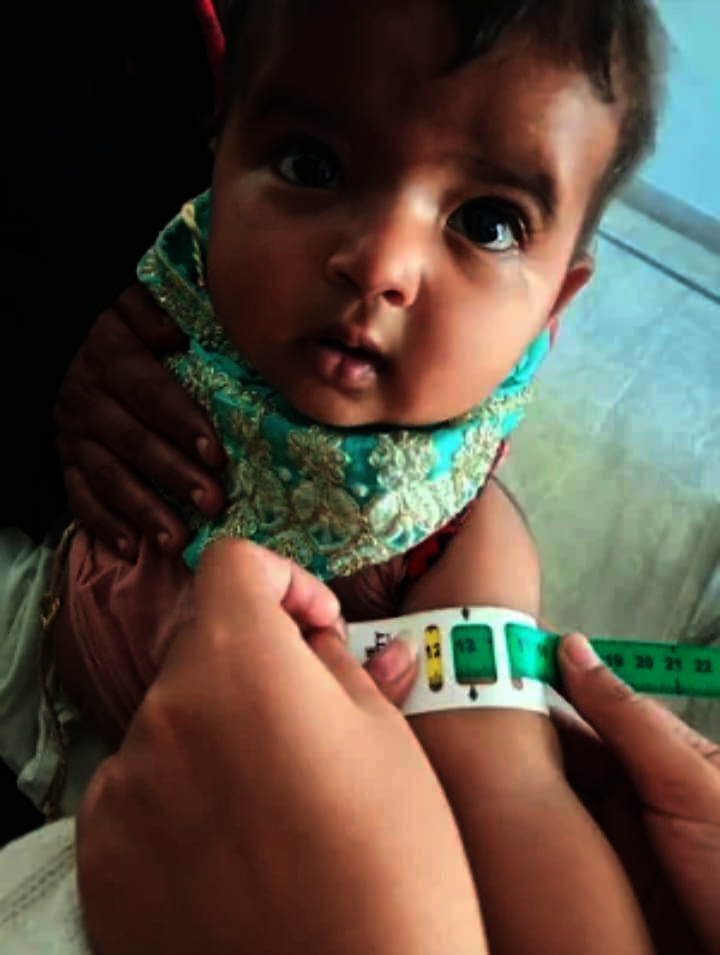 When seven-month-old Kainat was first brought to SHINE’s clinic on a warm September morning, she was quiet and far too fragile for a baby her age. While other infants her age were beginning to sit up and explore the world with curiosity, Kainat lacked the energy to even hold her head high. Her father, Saeed Ahmed, watched with growing anxiety as his daughter seemed to grow smaller each day. At her first assessment, the numbers confirmed the family's deepest fears: her weight was a mere 4.6 kg, and her mid-upper arm circumference (MUAC) measured just 11.2 cm. Kainat was diagnosed with Severe Acute Malnourished (SAM), a critical state that meant her very survival depended on immediate intervention.