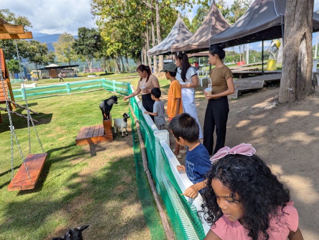Thanks to the generosity of donors, we were able to visit a covered playground and enjoy lunch with the older children (see photo of Connie and the children inside one piece of playground equipment) and visit one of the shopping malls decorated for Christmas. (see photo of children waiting by the train)
