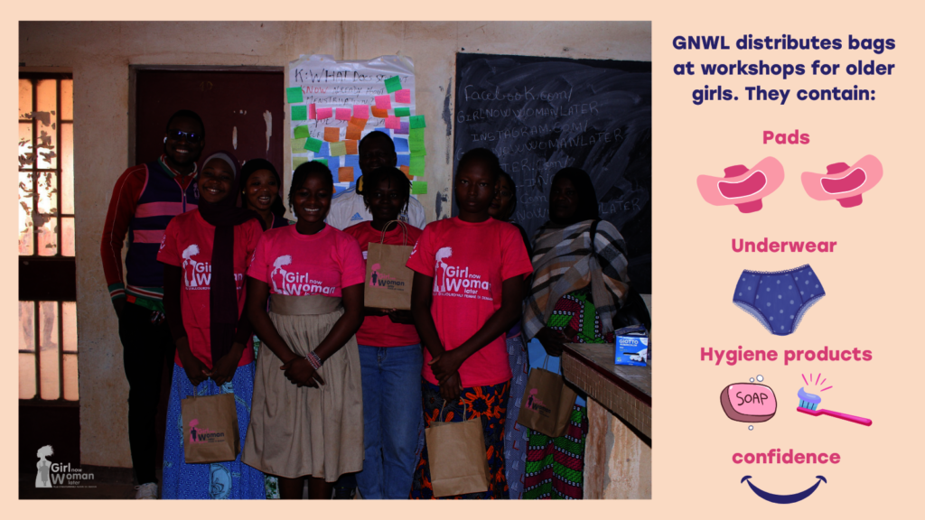 "Honestly, I learned a lot. Thanks to the Girl Now Woman Later association, I learned how to protect myself, how to stay clean, how to avoid infections, and what to do when I have my period. Before this session, there were things I didn’t understand, or things I didn’t know I shouldn’t do but today, I learned so much. I now know what I should and shouldn’t do to take care of myself during menstruation.