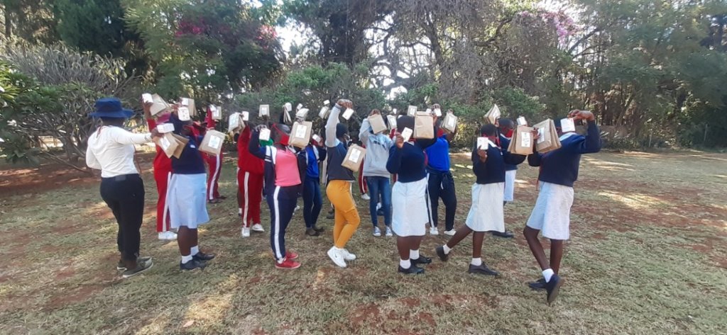 Last time we updated you on Girl Child, we were just about to have our end of term lunch. What a day it was! We had a hundred percent attendance! Lunch was rice, chicken in sauce and coleslaw, a much loved meal combination in Zimbabwe. The girls enjoyed an art session, some teaching from our COO, Mrs Albertyn and we were very privileged to have been able to distribute sustainable sanitary wear to all the mentors and mentees. Each girl was given three re-usable sanitary pants and a menstrual cup. Menstruation is a bit of a taboo subject to a lot of people in Zimbabwe so we had some wonderful training for the mentees prior to giving them these items.