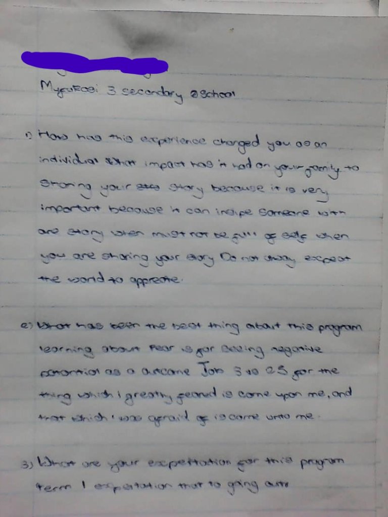 The Mentors also got to share some feedback forms with the girls to evaluate the programme. Most of the responses were quite positive with most of them noting that there is nothing they wanted to change and were happy with the programme. The most popular session was the one on sharing stories, highlighting hopes , fears, any hardships. With most of them noting that it helped them realise that they were not the only ones in the situation they were in. Another mentee noted that it changed her and she realised she could love and appreciate herself despite the circumstances. Maya Angelou's story was also notable to the girls, with them citing that it opened them up to great possibilities and that every job can be done by a women! On the changes they have experienced so far, confidence was the biggest highlight and that we couldn't agree with them more. With confidence came also courage, and some noted that they had been too reserved but now can interact with others and even speak in front of the class. Notable was the mentee who indicated that the sessions had given her greater perspective of life and can now aim higher , she had managed to overcome her fear and limitations she had put upon herself.