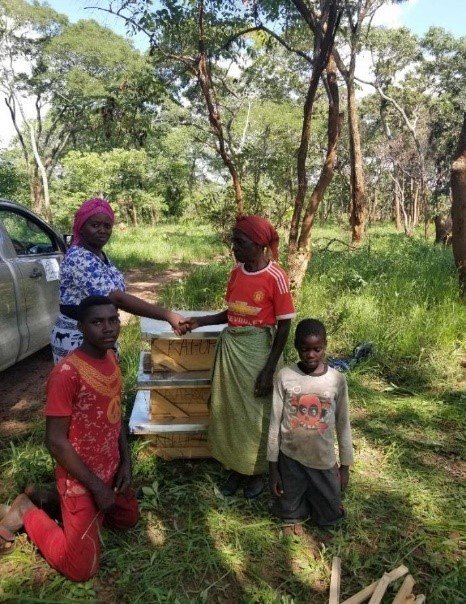 Mecca is a 74-year-old grandmother from Oposhi. She has a 20 hectare farm, part of which she uses to grow maize, beans, sweet potatoes, pumpkins, ground nuts and watermelons. Some she keeps and others she sells, while the other part of her land is left as woodland. Mecca registered for the bee keeping livelihood empowerment scheme after community sensitization meetings at which women particularly were encouraged to register. Her farm was visited to assess the condition of the woodland and when it was certified as good old growth woodland with potential to support bee keeping, she set aside 2.2 hectares of her 20 hectare farm for the ANR programme and was given five bee hives.