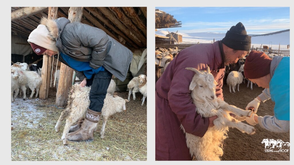 Due to the thick snow on the ground, open hoof wounds, lacerations, and malnutrition were common among livestock. Our vets treated animals with proper medications such as antiseptics, wound sprays, IV fluid, and multivitamins. The injection solutions were unable to be administered due to the cold temperature. Thus, our vets found oral treatment solutions.