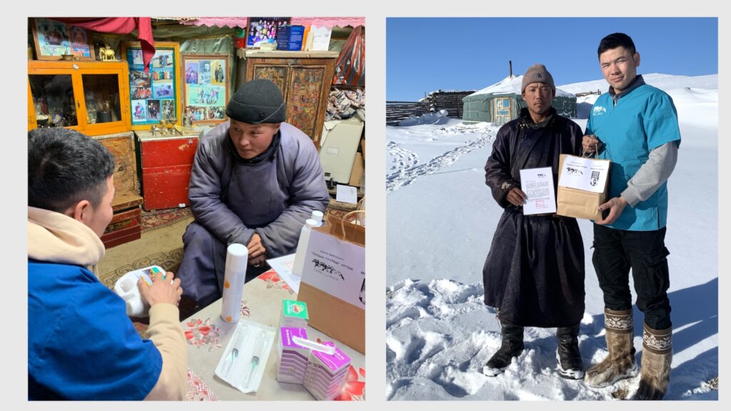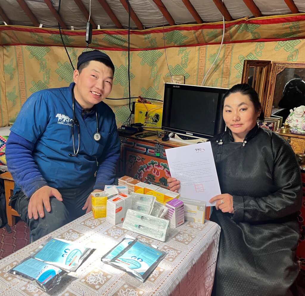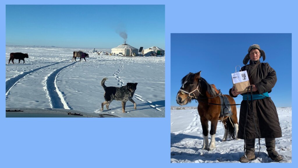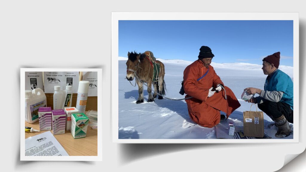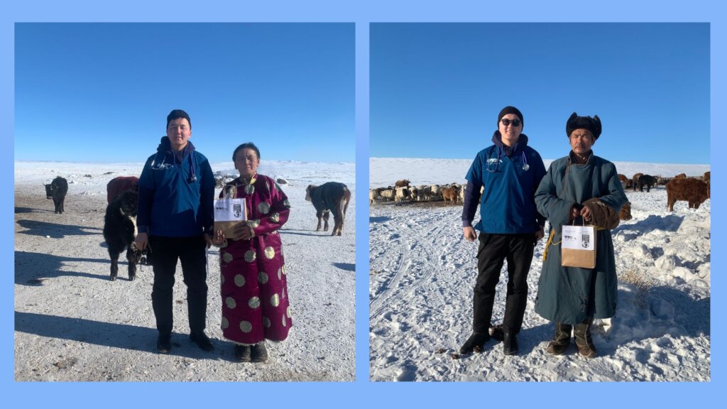 Our veterinary outreach program was efficient in the coldest month of winter, January 2024, crossed 14 bags of four Soums respectively in Arkhangai Province (five bags of Erdenemandal Soum, two bags of Khairkhan Soum, two bags from Ulziit Soum, five bags from Ugii Nuur Soum, Arkhangai province).