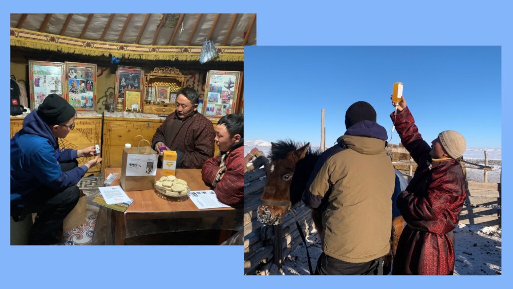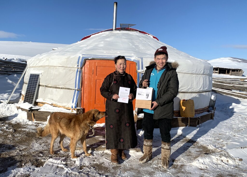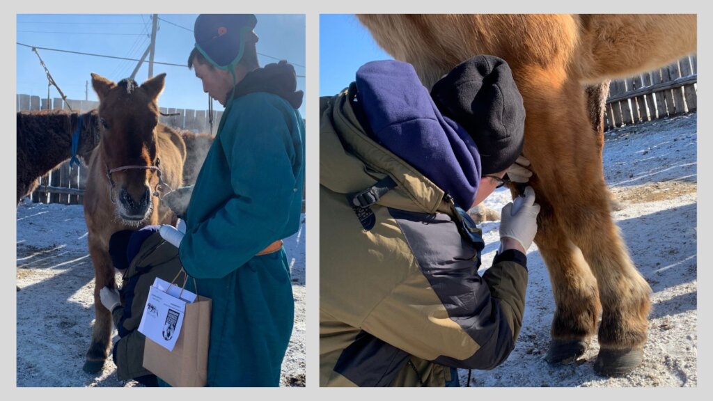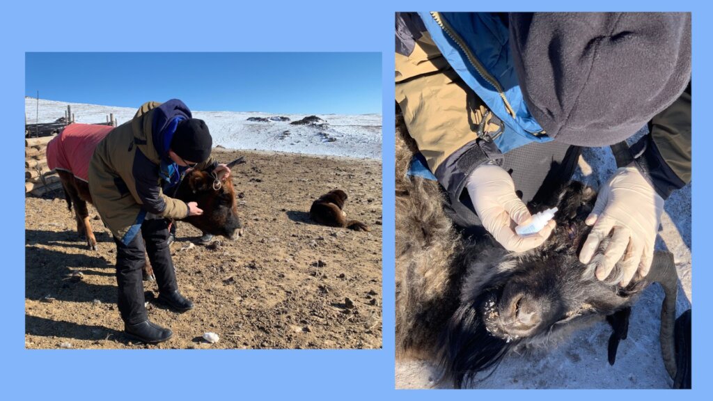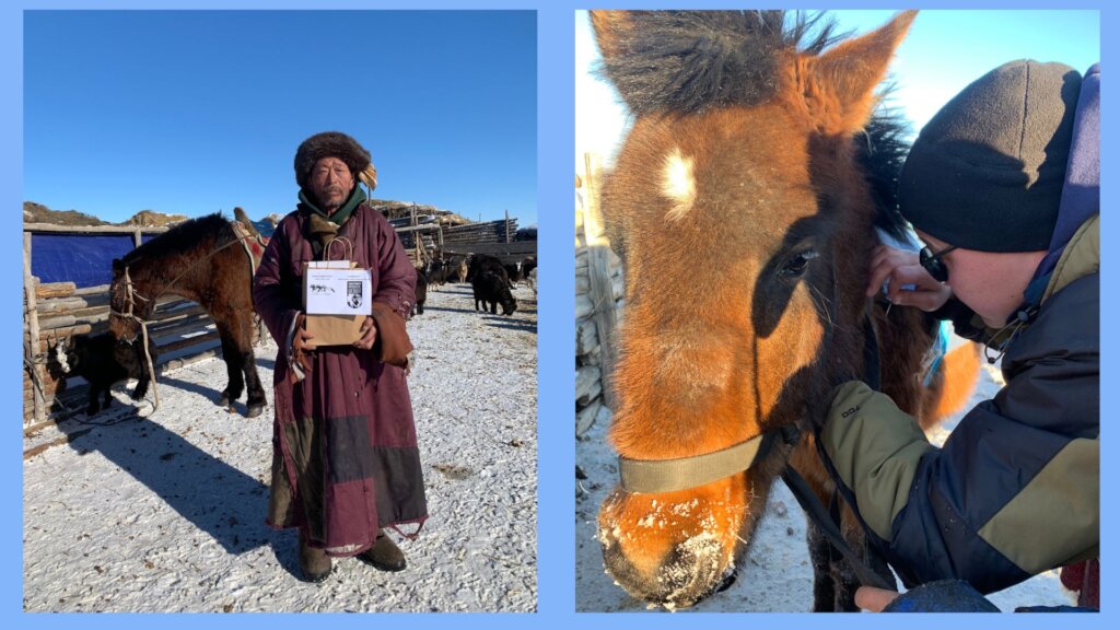 Our veterinary outreach program was efficient in the coldest month of winter, January 2024, crossed 14 bags of four Soums respectively in Arkhangai Province (five bags of Erdenemandal Soum, two bags of Khairkhan Soum, two bags from Ulziit Soum, five bags from Ugii Nuur Soum, Arkhangai province).