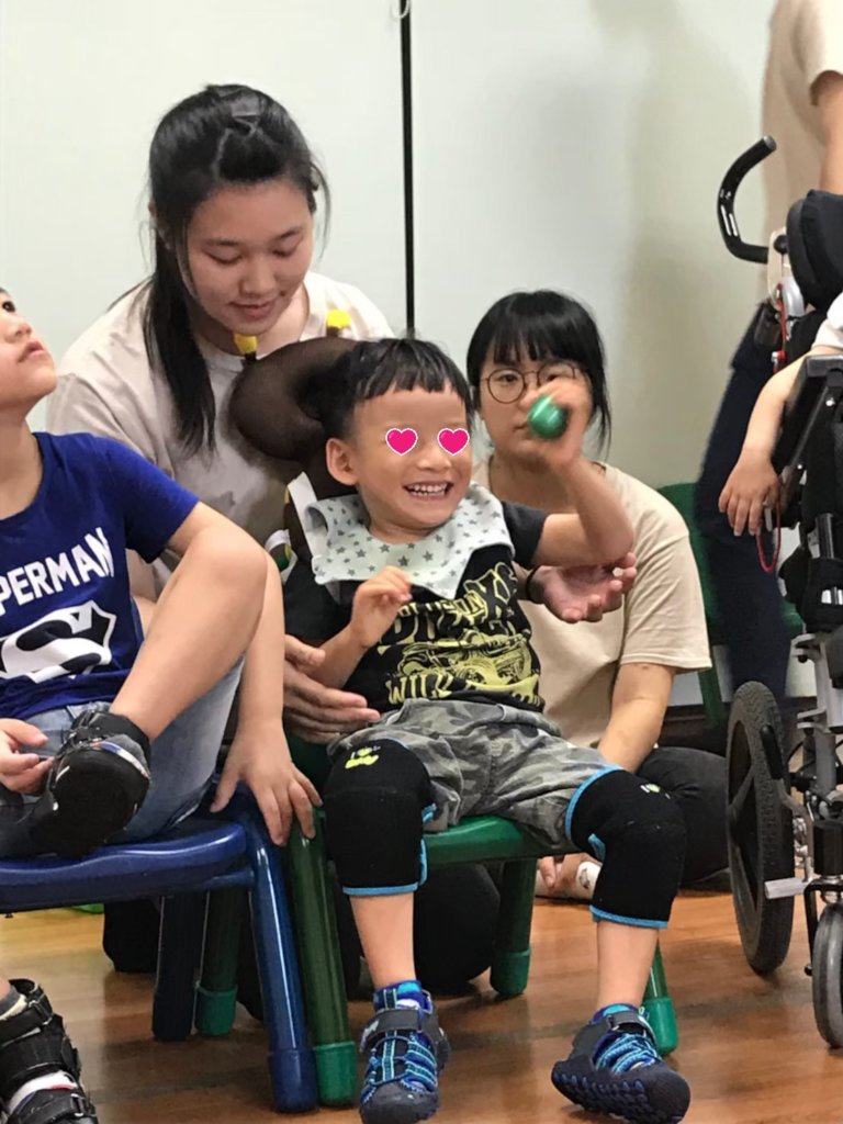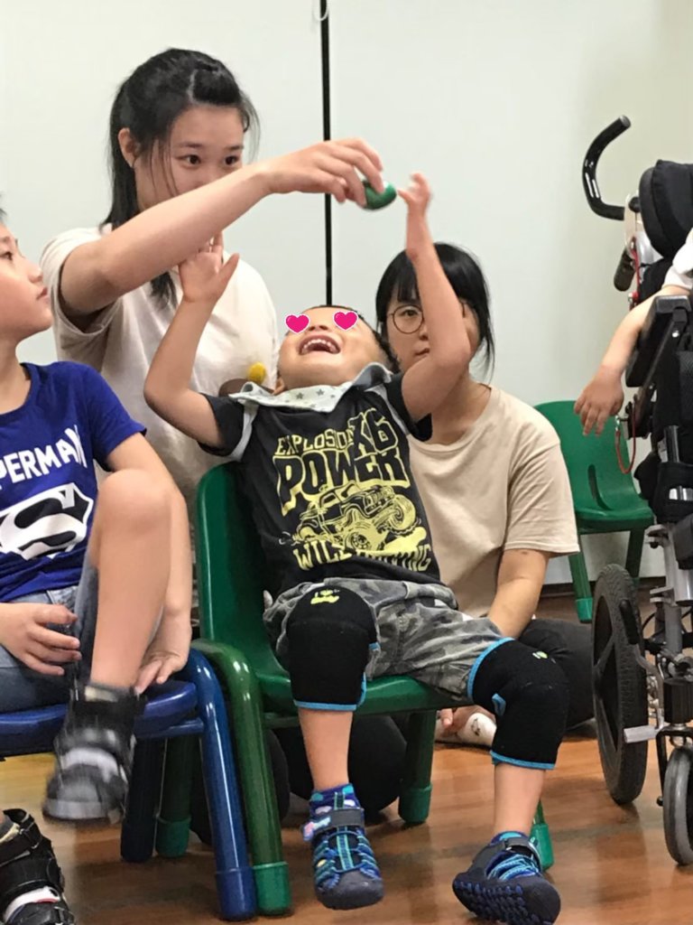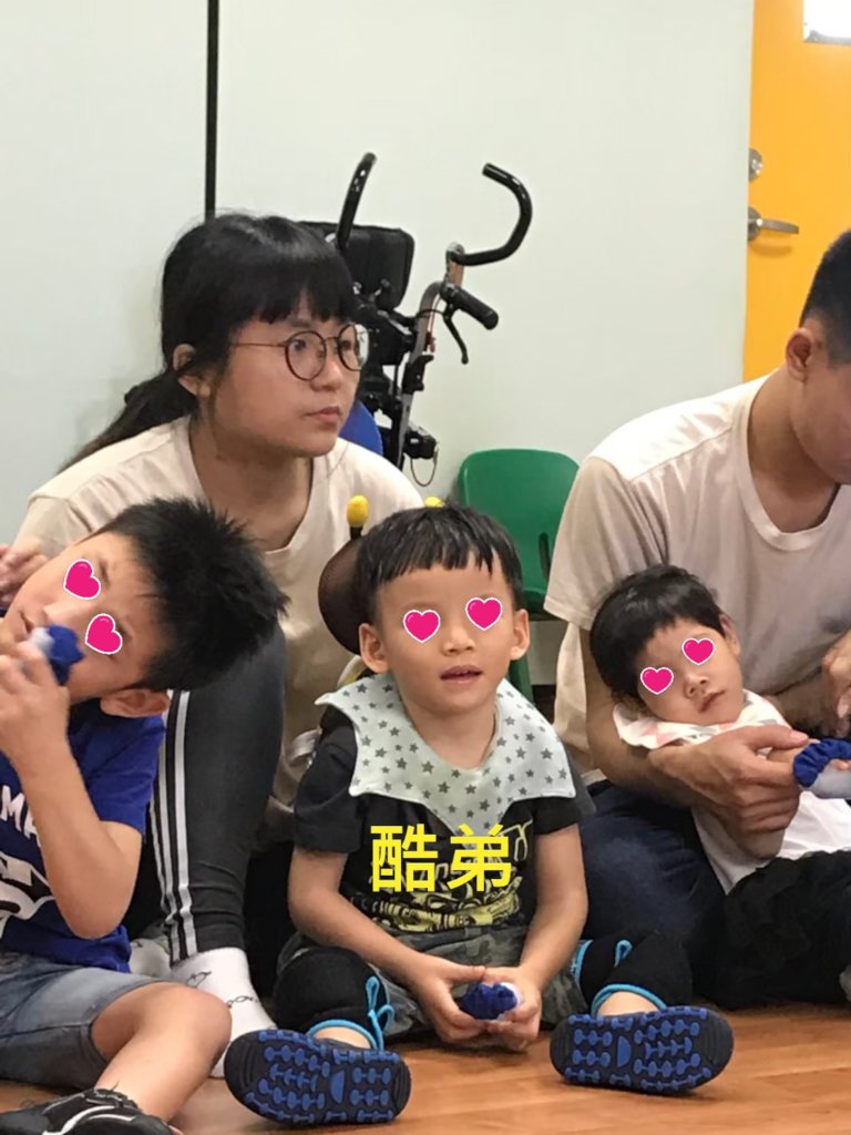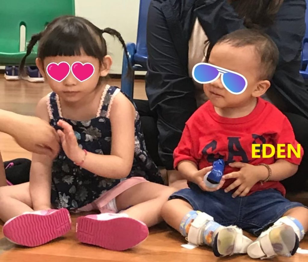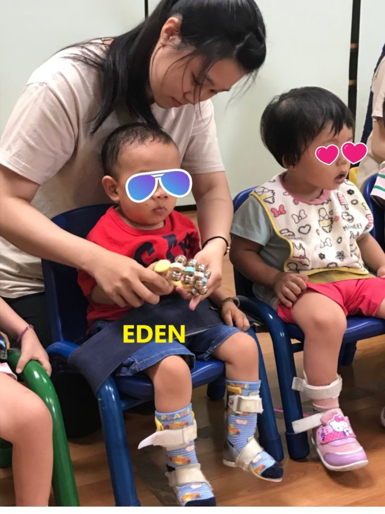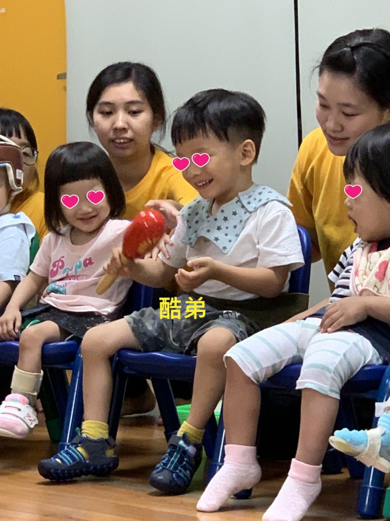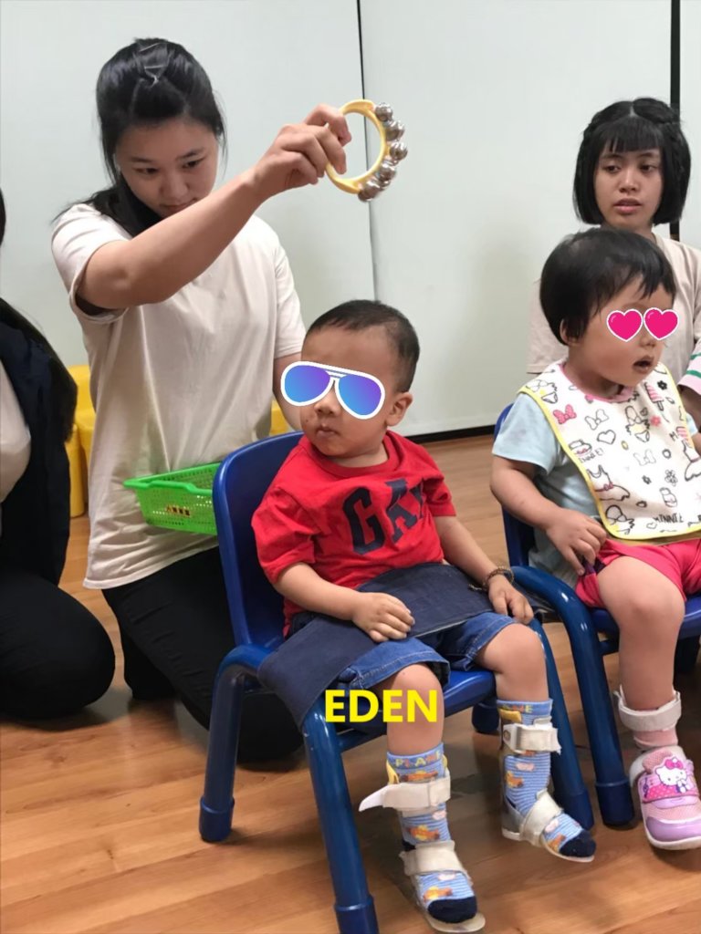 “It’s really hard for Eden to imitate actions or words and we have to let him watch others more frequently with more support than other children. At the beginning when Eden joined us, he would cry loudly even just heard the sound of Ukulelel which was playing by the teacher. We’ve tried many times and we found the reason finally. Eden’s parents helped Eden do stretching exercises to strengthen his weak muscles and they usually did at home with the sound of music. Eden might feel uncomfortable while doing the exercise. The bad feeling could link with the sound of music in Eden’s mind. So we decided not to touch his body when we have any sound of music in the class. Thank God it works! Eden is getting used to hear the sound of music without the bad feeling.