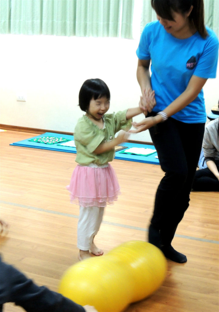 Today, Tina is able to actively participate in the class, and become involved in music. Through group musical activities, she could dance with joy and move her body while playing music.