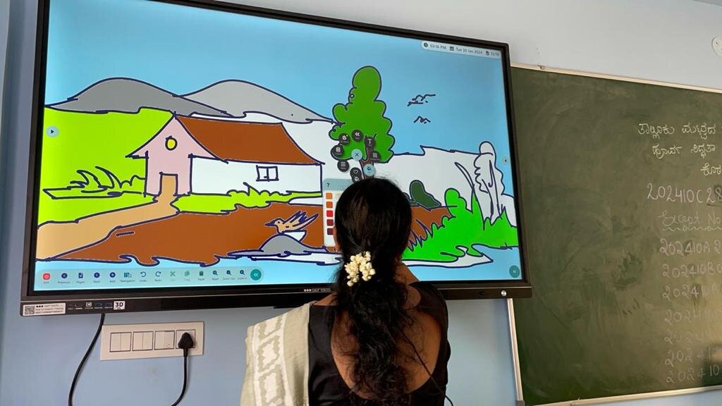 The interactive digital learning panel was installed in 6 Govt schools in Bangalore.Through this Interactive Digital Learning installation 85 Teachers in 6 Govt schools will now have access to good tools for teaching & 3821 students will have access to quality education.