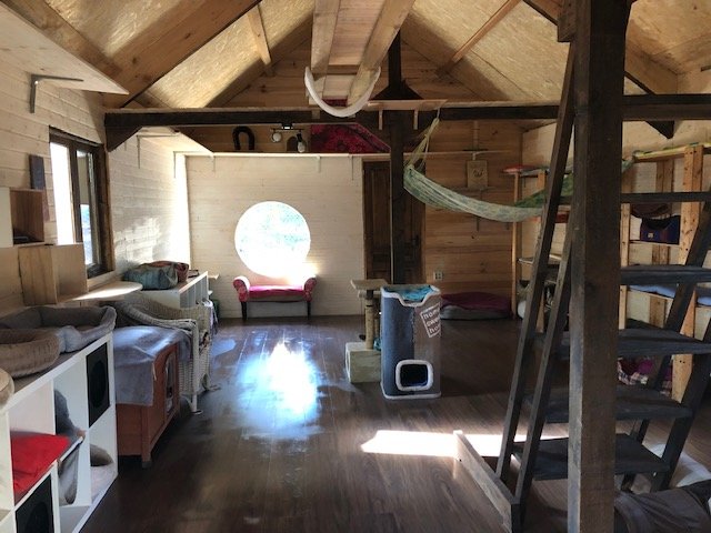The old house has already been demolished, new materials have been purchased and building starts next week! The new house will be approximately 350 square feet (32 square meters) with windows for natural light, a wood pellet stove for heat, a loft area, a covered porch and will be fully furnished with lots of shelves and soft comfy beds for our furry friends.
