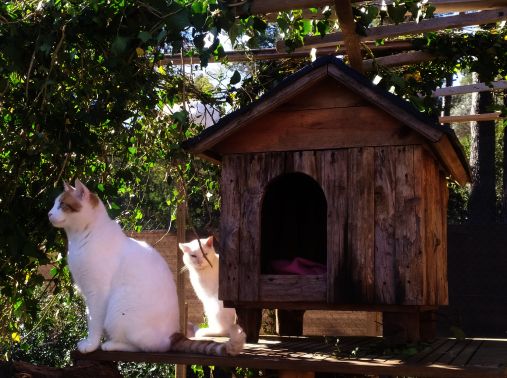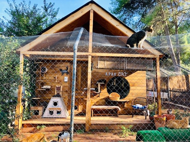 When we moved the cat shelter to its current location just over 4 years ago, the very first house we built was for our cats with FelV. For those of you who don’ t know, FelV stands for feline leukemia, it’s a virus that weakens the cat’s immune system which can lead to various diseases and eventually death. It’s contagious from cat to cat so it’s important that all cats are tested upon arrive at the shelter and those who are positive must be kept separate.