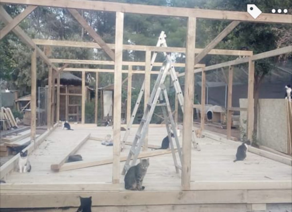 During the move we had a very limited amount of time to build some shelters and move 150+ cats so the original house we built was actually made out of scraps of wood. Over time it has deteriorated, and its foundations were beginning to rot so the time has come to rebuild it.