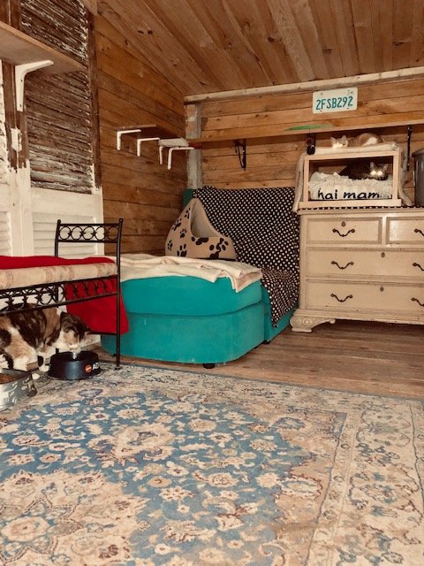 We have recently added a new cat house. We wanted to create a space that really felt like home, especially for those cats coming from an actual home or for those who do better living in a smaller, more intimate space.