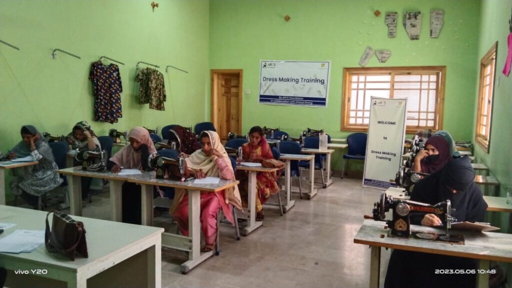I am Sashul of just 17 years, an orphan girl and I could manage to have functional literacy from an adult learning center just 2 years ago. I have been unable to get education because my mother doesn’t have resources as well as nor her health was allowing to put me in school as my father left us when I was just six years. At the age of six, I started to work to earn because my mother need money for her medication too. I used to serve in homes of the well-off families living near to my home. I start working from early morning to late night, the work included cleanliness of houses, cleaning dishes, washing floors, dusting and pressing clothes etc. I used to work in 6 to 7 homes on daily basis. Through very hectic and hardworking in childhood I could earn rupees 2700 to 3000 only per month. Always my mother been worried in particular when I crossed my age of 15. So, she wanted that I may do any other work which should be safe, secure, respectable and near to my mother as I was becoming young. In continuation, I got admission in an adult literacy center to able to read and write. After, functional literacy course, my mother asked acquire any skill to earn in a decent manner to make myself stronger for long term. In continuation of vocational skills center search, I came to know that ARTS Foundation is providing three months free of cost basic dress making training to orphan and needy girls. I visited ARTS Vocational Training Center along my mother. I found the center an appropriate place with professional instructors to learn dress making. I got application form and submitted it after filling on very next day. And it’s more than pleasure that formally classes have been started on 1st January 2023 and I am here at ARTS Vocational Training Center along my class mate girls.