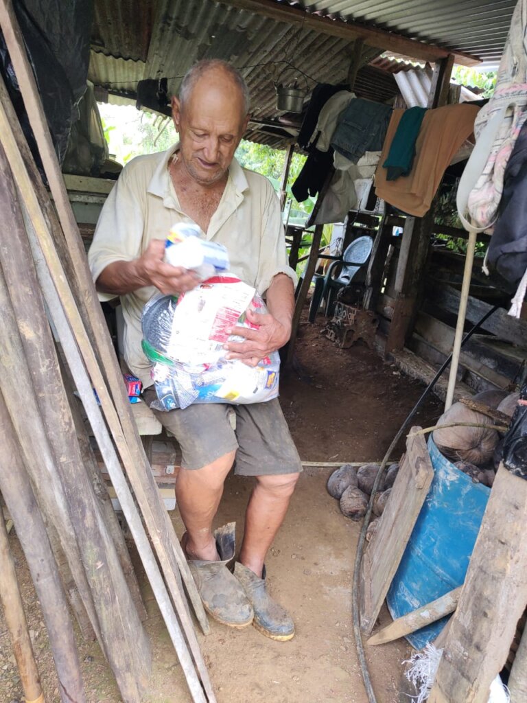 Mayra tells us that she has known that community for a long time and that their situation is complicated. “It is a community that lacks electricity, telephone and internet access, and very few resources. I thought of visiting them because they had told me that some older adults were in vulnerable situations, so I decided to go. I found myself with 3 adults really in terrible shape. I also visited two who lived in a borrowed house and needed to walk a long way to earn a couple of hours of work and take food home. They also do not have a state pension since it is difficult for them to go out and do paperwork.