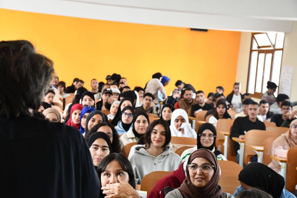 Suddenly, a group of students from Dr. Afaf Hamzaoui at the Faculty of Letters and Human Sciences of Ibn Zohr University surprised her with a heartfelt tribute. A bouquet of flowers, a commemorative plaque, and one clear message: gratitude, respect, and love.