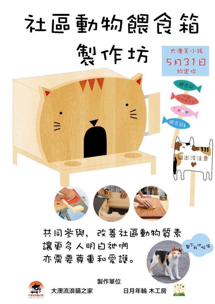 We are going to have a project in July 2017 to make feeding boxes and road signs for Tai O stray cats.