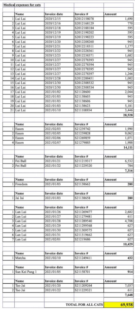 Because of the pandemic, sterilization appointments for cats scheduled, but temporarily cancelled due to insufficient manpower from many vet clinics (supposedly there were 6 cats for sterilization in that week); but the breeding of stray cats keeps non-stopping. Other than that, I need to keep researching reasonable and affordable prices for sterilization of stray cats and cats of local stores to lower our spending; otherwise, our funding will not last long.
