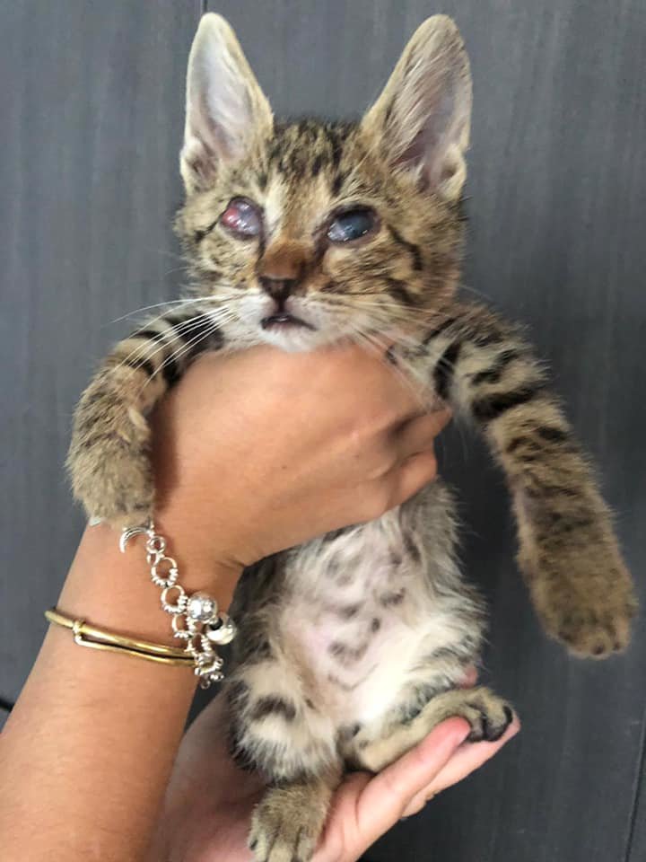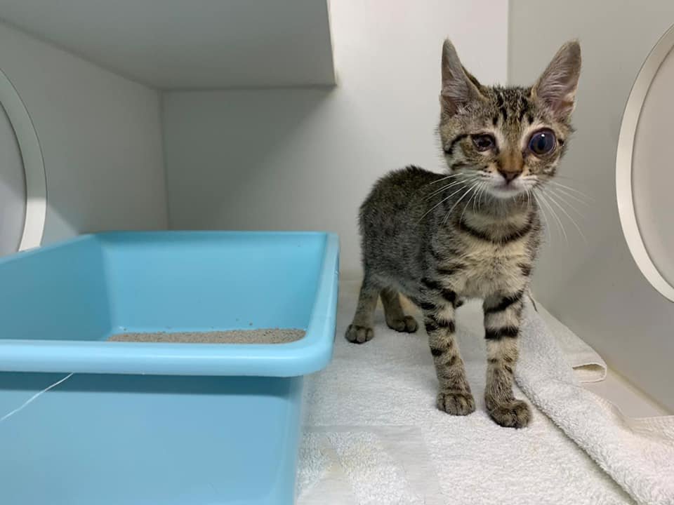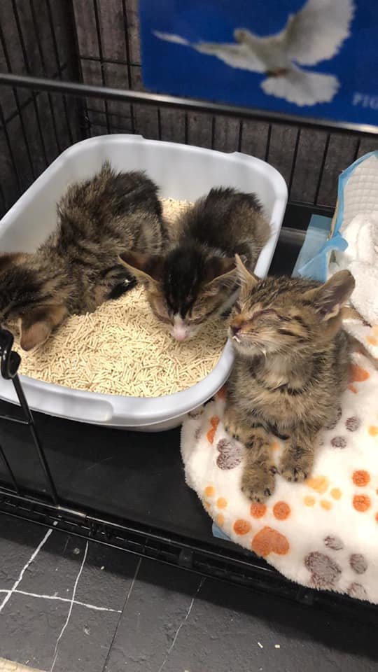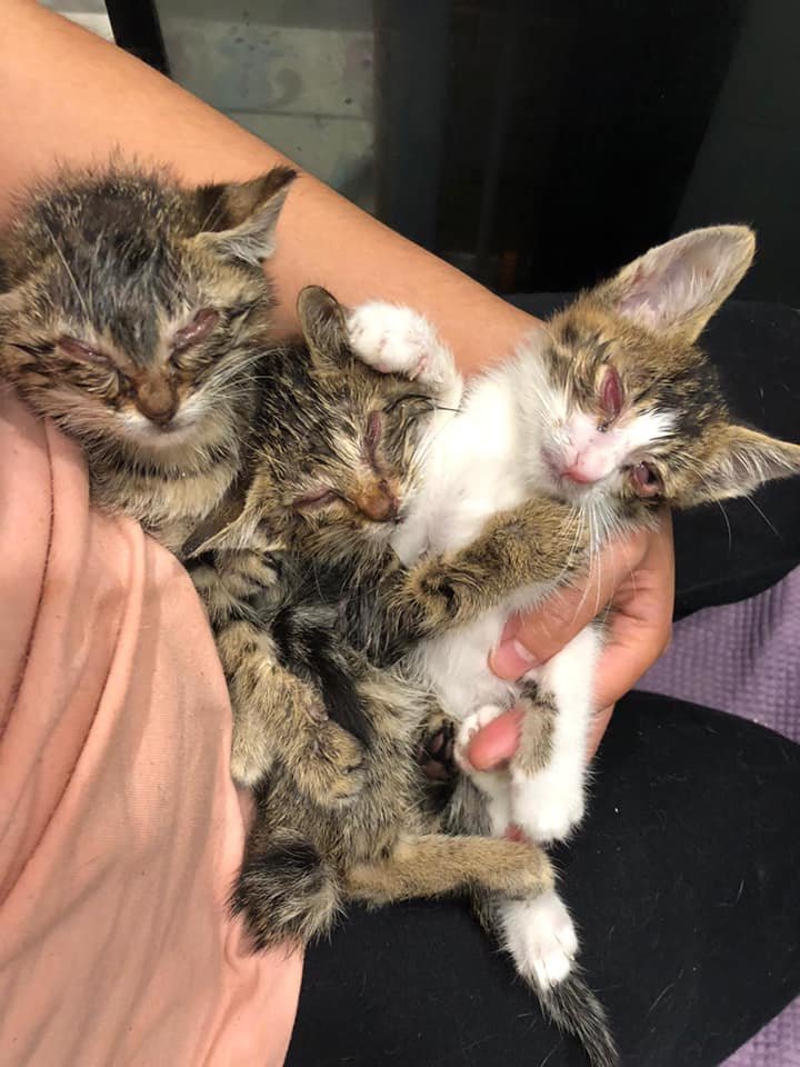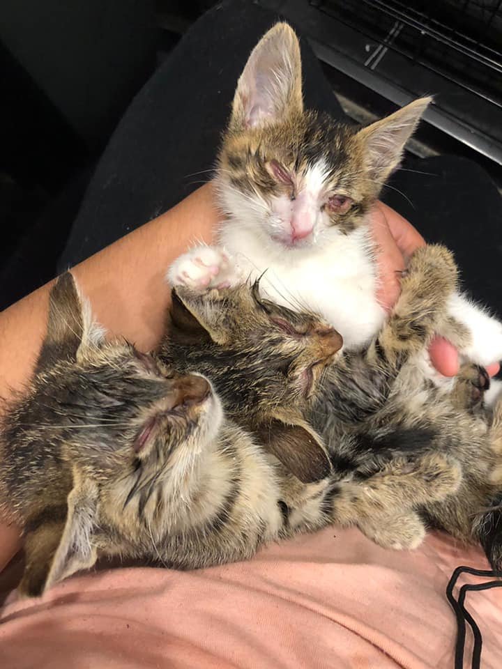 After seeing the doctor, all these three kittens are fine, but they were still too lightly weighted, each of them was only about 300 grams. One of the kittens, he was in the worst health condition; he was also starting to eat and urinated today.