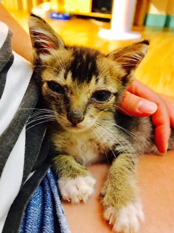 In August 2017, just before the strong typhoon, Pigeon, a week old kitten, Small-bee, was rescued in Mui Wo (Small-bee_1). The Small-bee was very weak and we spent lots of effort to take care of him. (Small-bee_2)