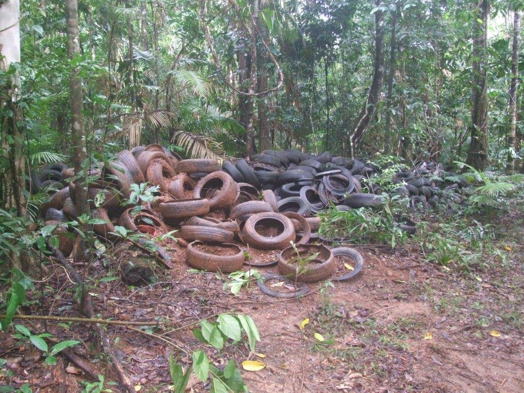 At LOT 46 Cape Tribulation Road nine semi-trailer loads of rubbish, including 13 car bodies, a shed, a tank stand and a 24 foot boat trailer were removed. An additional five tonnes was carted out by hand so as not to disturb the delicate plants. A large concrete slab was broken up and buried three metres underground and another 56 oil palms were poisoned.