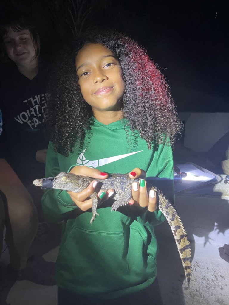 The research surveys we have conducted the last few months have been focused around Placencia Lagoon given the unusual weather, it will save us time and resources if we have to cancel last minute closer to home. We decided given weather it’s best to concentrate research efforts close to home, expanding to other areas in Belize come dry season (which starts in January). We have tagged 15 new crocodiles, all juveniles to small adults. This illustrates the population of crocodiles in Placencia Lagoon is much larger than originally thought given the low number of recaptures. External examination of all crocodiles illustrates a healthy population, which would also indicate a healthy environment. Tissue samples for heavy metal analyses were taken from all crocodiles. We are still in the process of exporting samples to the US for heavy metal analysis, but still waiting on Belize government approval. An interesting find within this time of capture surveys was finding a yearling missing its right front arm. Despite the clean bite mark (likely from a turtle), the female American crocodile is definitely healthy has adapted to thriving in its environment with 3 legs!