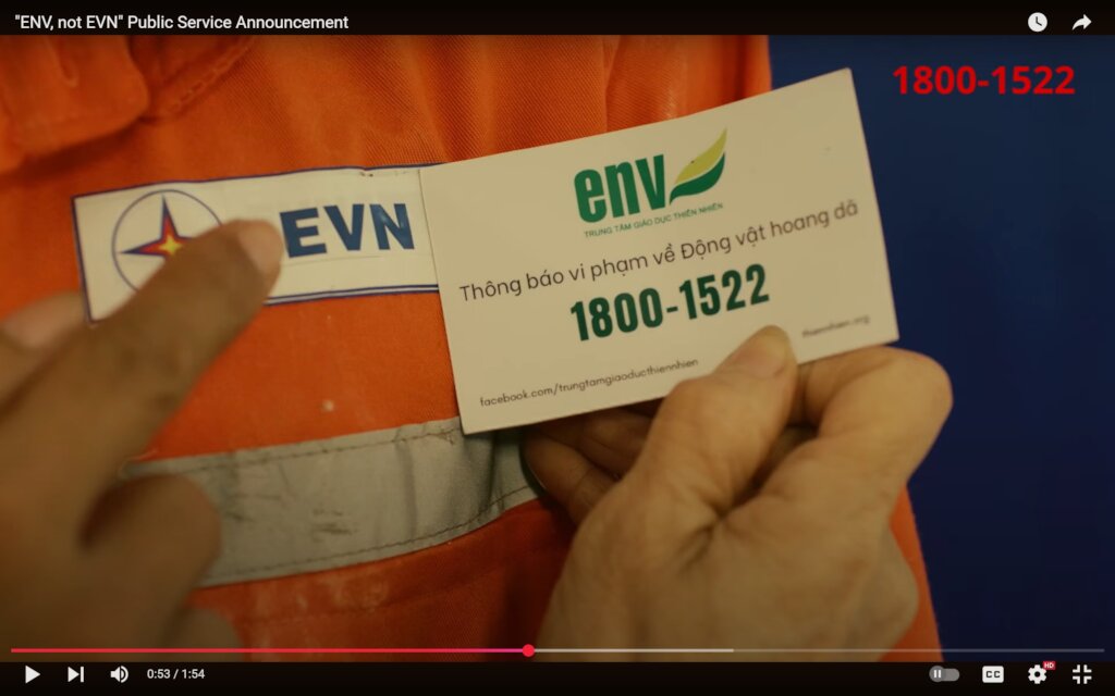 In addition, we have produced three TV public service announcements, and each was aired on at least 20 national and local TV channels. In addition to the TV PSA, ENV also partnered with the Voice of Vietnam (VOV) to promote the ENV Wildlife Crime Hotline on its traffic radio stations in Hanoi and Ho Chi Minh City during rush hours. These are the most popular radio channels in Vietnam.
